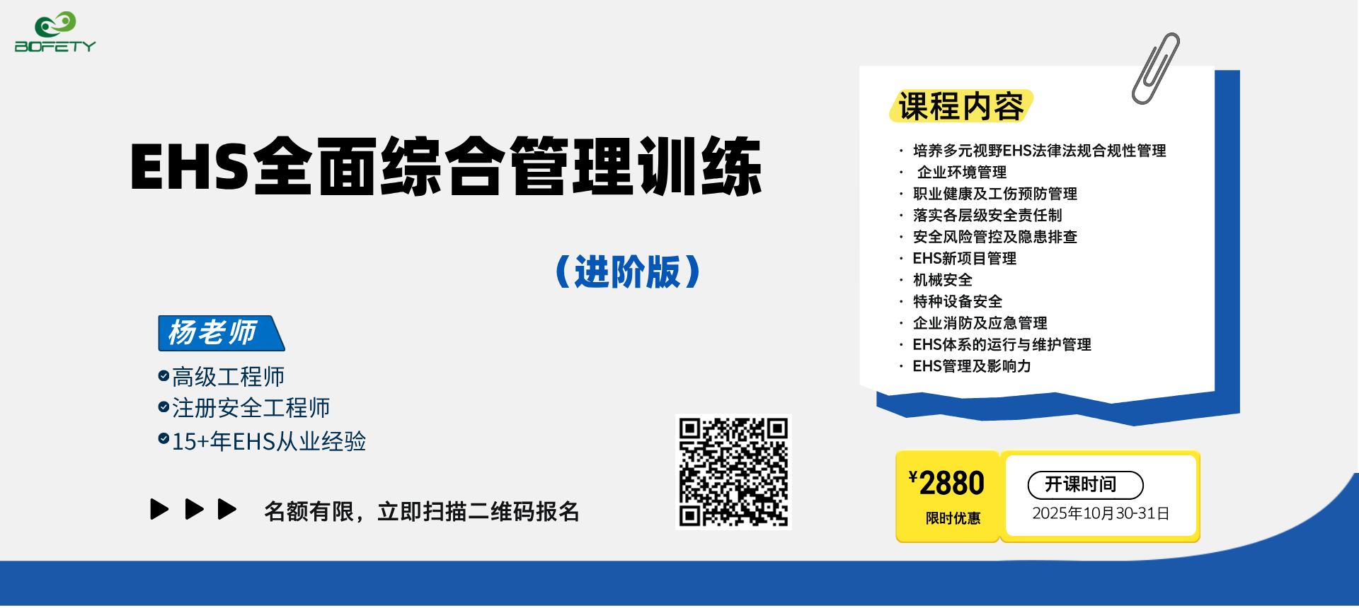 EHS全面综合管理训练(进阶版) | 2025年10月30-31日 | 苏州 | 申请报名 |