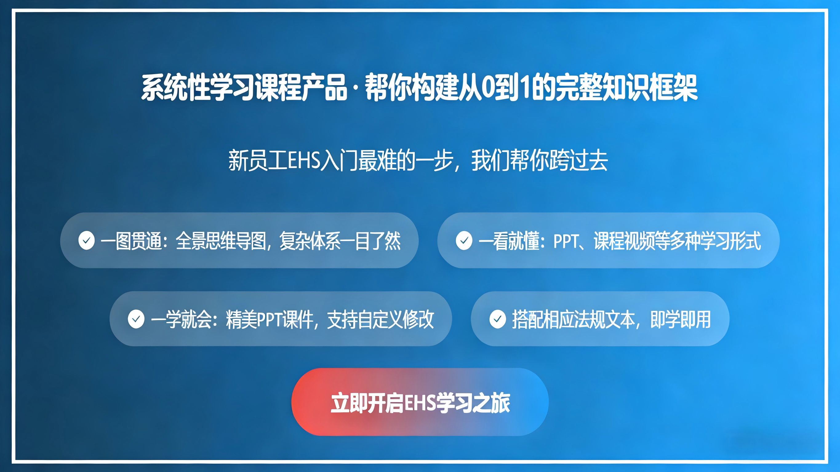 EHS新人系统成长计划这不是又一门普通课,而是一套专为EHS新人打造的系统化学习训练课程,帮你构建从0到1的完整知识框架。